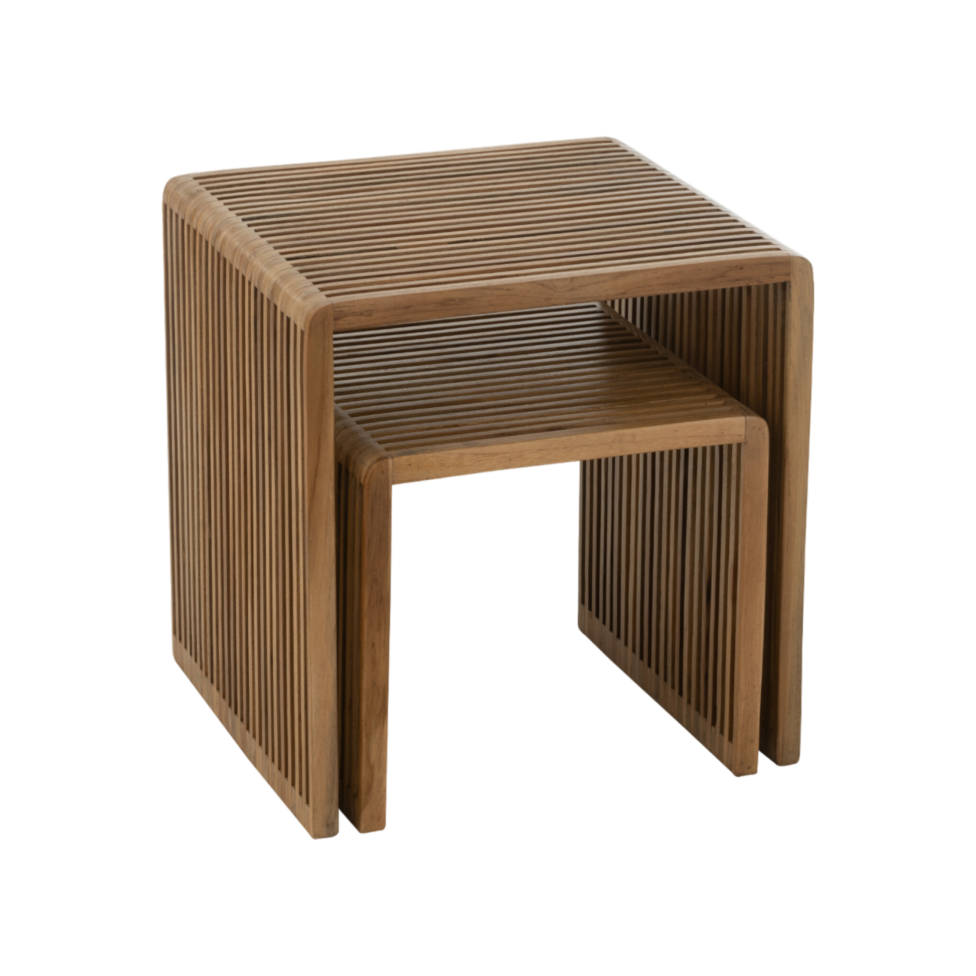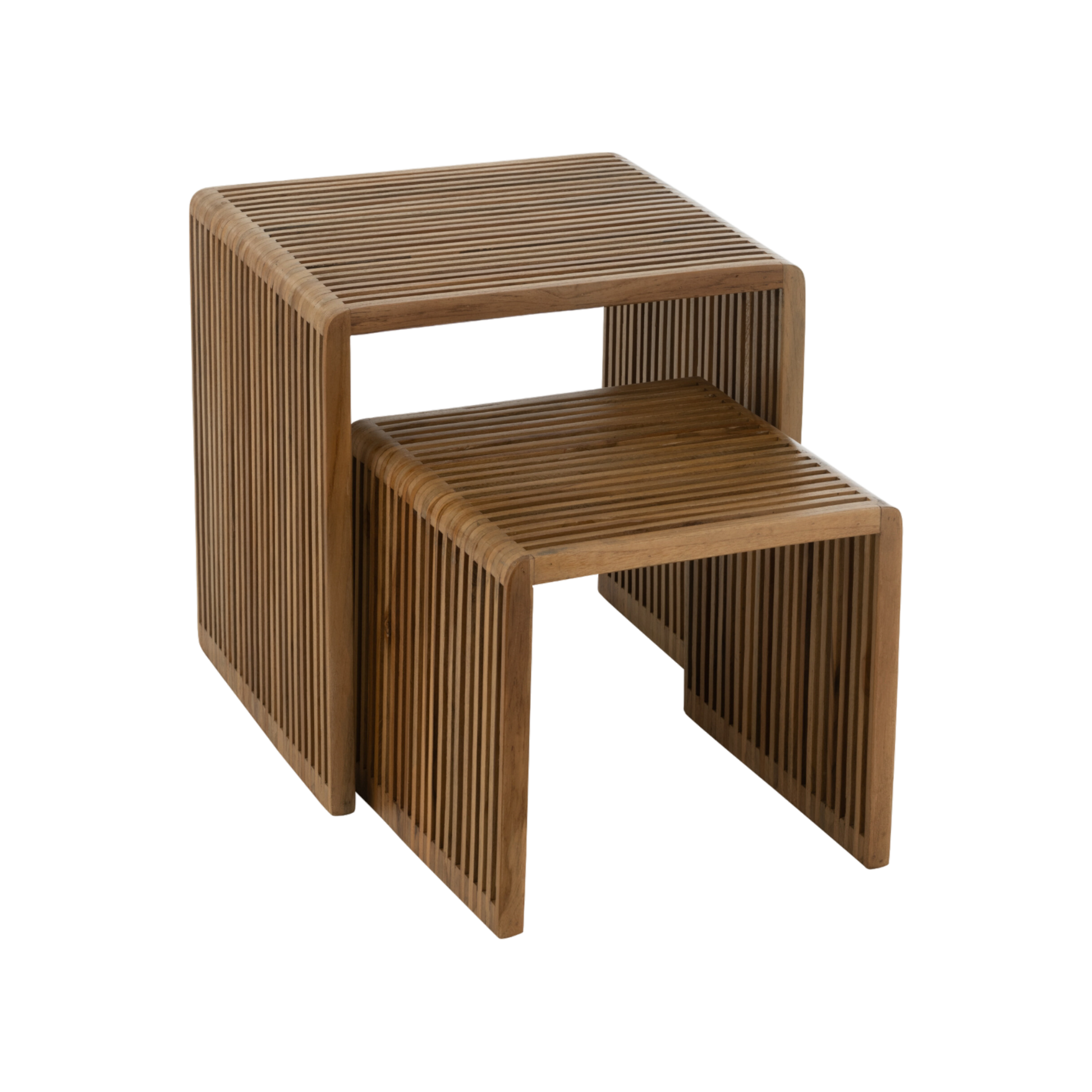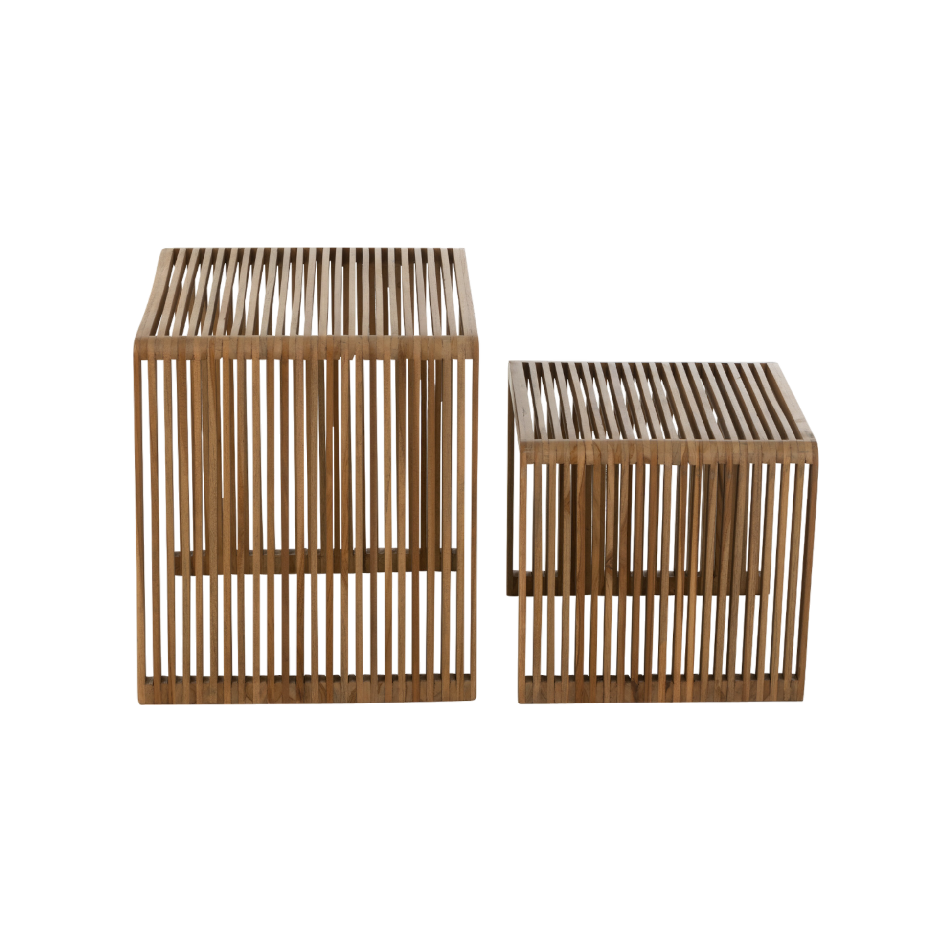- L: 50cm x L: 45 cm x H: 50 cm Table basse cubique teck recyclé naturel