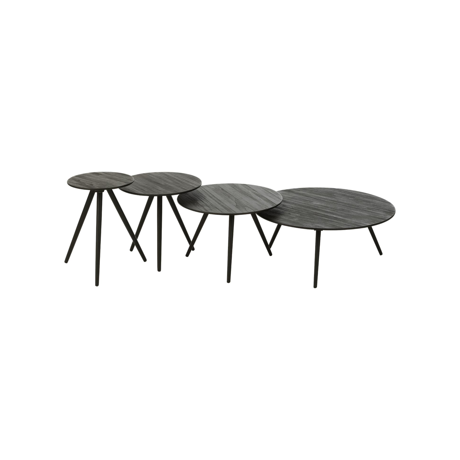 Transformez votre espace avec cet ensemble de 4 tables rondes en teck. Idéales pour les petits espaces, ces tables peuvent être utilisées ensemble ou séparément, ajoutant une touche élégante et polyvalente à votre décoration.