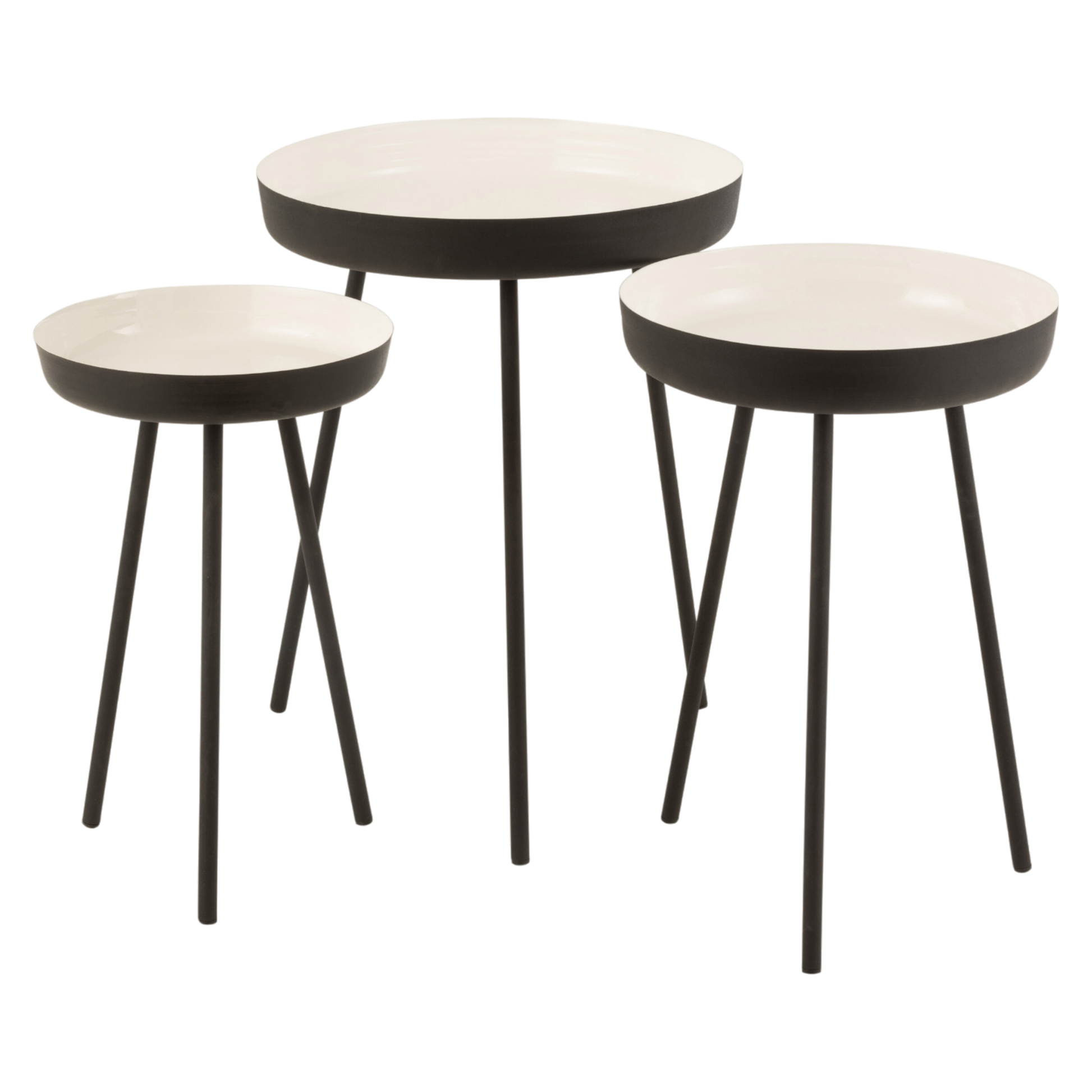 SET OF 3 NEST OF TABLES BLACK/WHITE METAL