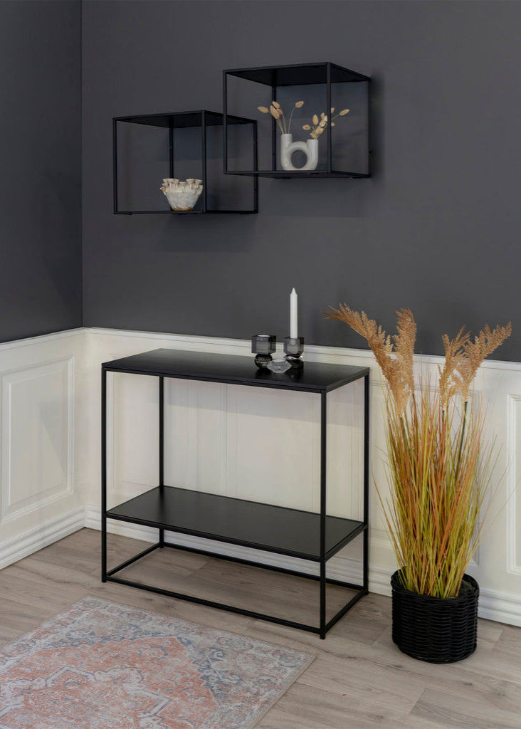 Cette étagère murale noire en acier Vita allie robustesse et design épuré. Parfaite pour organiser vos espaces tout en apportant une touche moderne à votre intérieur, elle supporte facilement vos livres, objets décoratifs ou accessoires. Facile à installer, elle optimise votre rangement sans encombrer votre pièce.